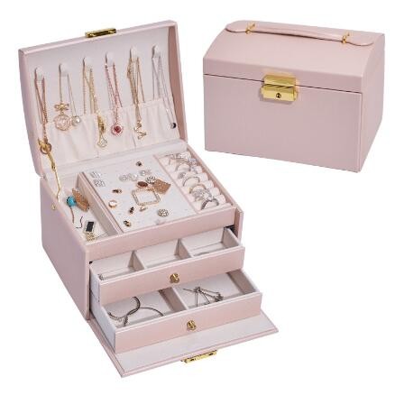 12分鐘前帶鎖三層抽屜首飾盒 。大容量,巨能裝,滿足女孩子收集癖,各種首飾裝裡面,防灰防塵防氧化,不易丟,超好用 - NT$1299兩入組