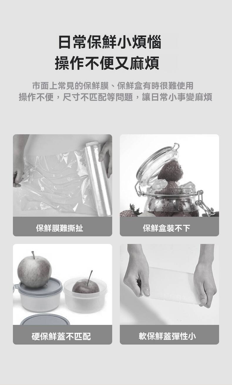 半小時前新款保鮮膜套 食品級材質,彈力縮口,任何大小、形狀都能輕鬆套上,保鮮不跑味,方便快速,乾淨衛生,廚房必備好物! - 今日限定:八入組(800個)NT$1099(96%客戶的選擇)再贈送驚喜禮品一份!-NT$1099