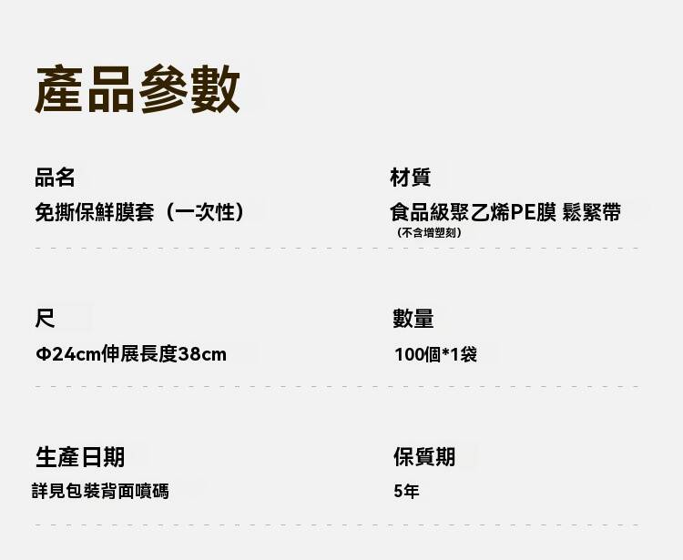 15分鐘前新款保鮮膜套 食品級材質,彈力縮口,任何大小、形狀都能輕鬆套上,保鮮不跑味,方便快速,乾淨衛生,廚房必備好物! - 超夯特惠:五入組(500個)NT$998 再贈送驚喜禮品一份!-NT$998